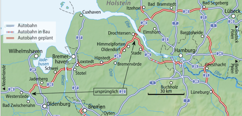 Von sieben Abschnitten wurde bisher nur für zwei das Planfeststellungsverfahren eingeleitet. Planfeststellungsbeschlüsse gibt es noch keine. Auch wenn es nach dem kleinen Exkurs in die Geschichte nicht so aussehen mag: Gemessen am planungsrechtlichen Verfahrensstand steht die A 20 in Niedersachsen noch ganz am Anfang.