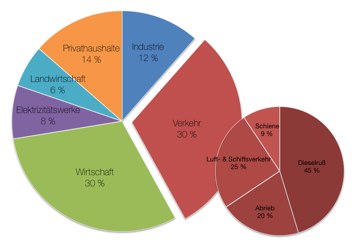 Feinstaub-Emissionnen nach Verursachern;